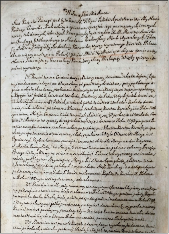 Opis kościoła w Mystkowie w dokumencie z roku 1793 podczas wizytacji biskupiej